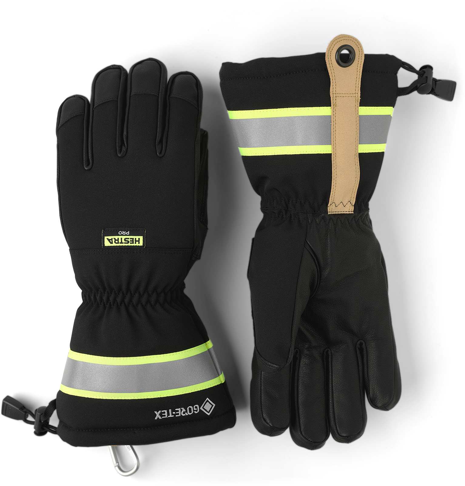 En handske med mycket god isoleringsförmåga, som håller händerna både varma och torra även i snörika, kalla och fuktiga miljöer. Membran i GORE-TEX gör handsken helt vind- och vattentät men samtidigt ventilerad. Extra lång krage utrustad med snölås samt reflex för ökad synbarhet. Innerhand i Army Leather, ett slitstarkt impregnerat getskinn. Boxfingerkonstruktion skapar ett isolerande luftutrymme runt fingertopparna som skydd mot kylan. Utrustad med karbinhake, leatherbalm samt handcuffs för att underlätta att ta av och på, utan risk att tappa handsken.