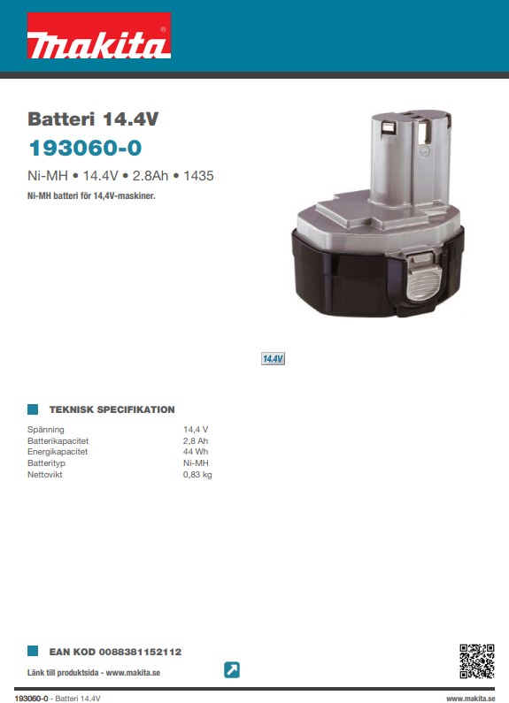 Ni-MH batteri för 14,4V-maskiner.